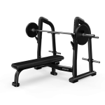 Precor Benches & Racks Angled bench eases bar pickup with stable stance; adjustable seat and bar catches fit users; replaceable polyurethane guards prevent contact. |